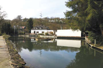 Das rhythmische Dröhnen, das hier werktags zu hören ist, stammt von den Halbachschen Hämmern. Unter ihnen werden seit 1936 Zangen geschmiedet.Der Fabrikgründer, Friedrich Halbach, wurde im "Haus Fliedergarten", einer ehemaligen Gartenwirtschaft auf der gegenüberliegenden Seite des Morsbachs geboren.
